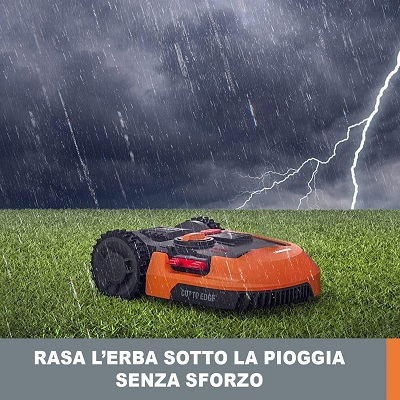 Resistenza agli agenti atmosferici: se il tuo giardino è esposto a condizioni climatiche variabili, assicurati che il robot sia resistente all'acqua (con certificazione IPX5 o superiore), così può lavorare sotto la pioggia senza danneggiarsi.